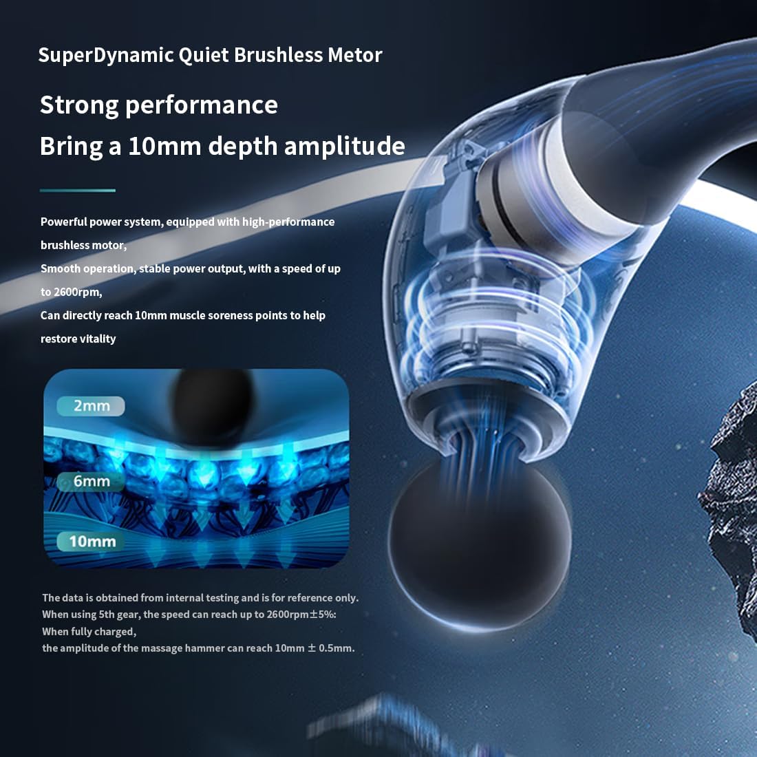 - 【High efficiency brushless motor】The massage gun is equipped with a high efficiency brushless motor that lasts up to 200 hours. Combined with ultra-quiet technology,the working noise is only 40-50 dB. Therefore, whether it is in a noisy gym or at home, you can enjoy it without disturbing others.