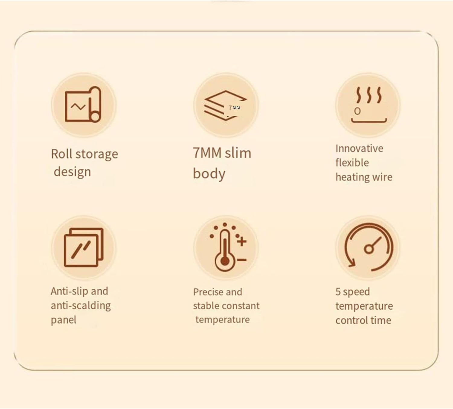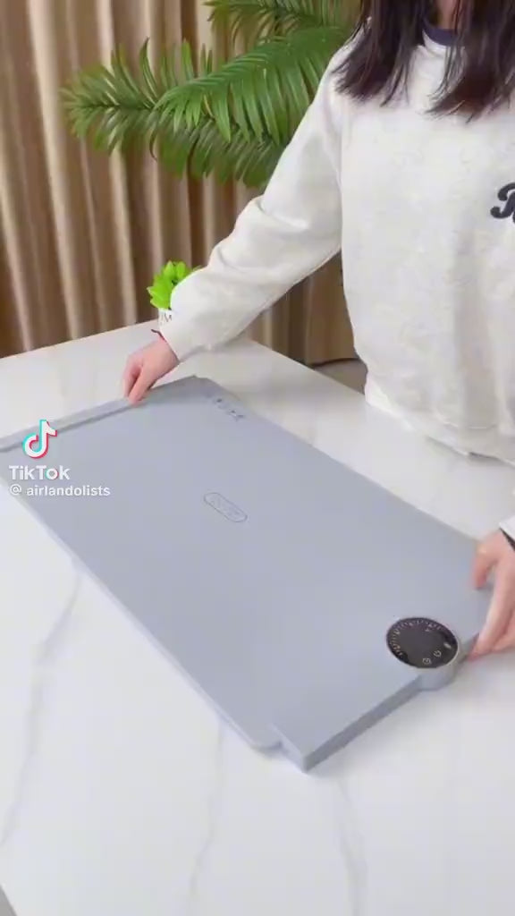 - 【Compact electric food warming tray】The unfolded size is 67*38cm, and the thickness is only 1.2cm; the heating area is large. It's thin, easy to move, folds and stores easily. Multifunctional hot plate with smooth surface and large surface area designed to heat multiple dishes at the same time.