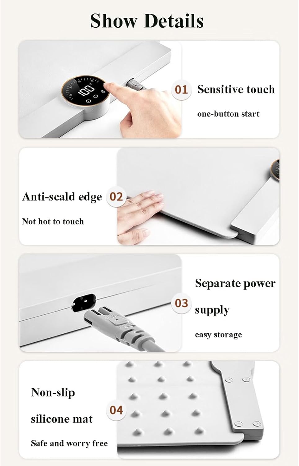 - 【4h Smart Timing Electric Heating Plate Warming Tray】Easy to operate with one touch. 4h intelligent timing. The thermal insulation board conducts heat quickly and is suitable for a variety of heat-resistant tableware. Perfect for any occasion, any location.