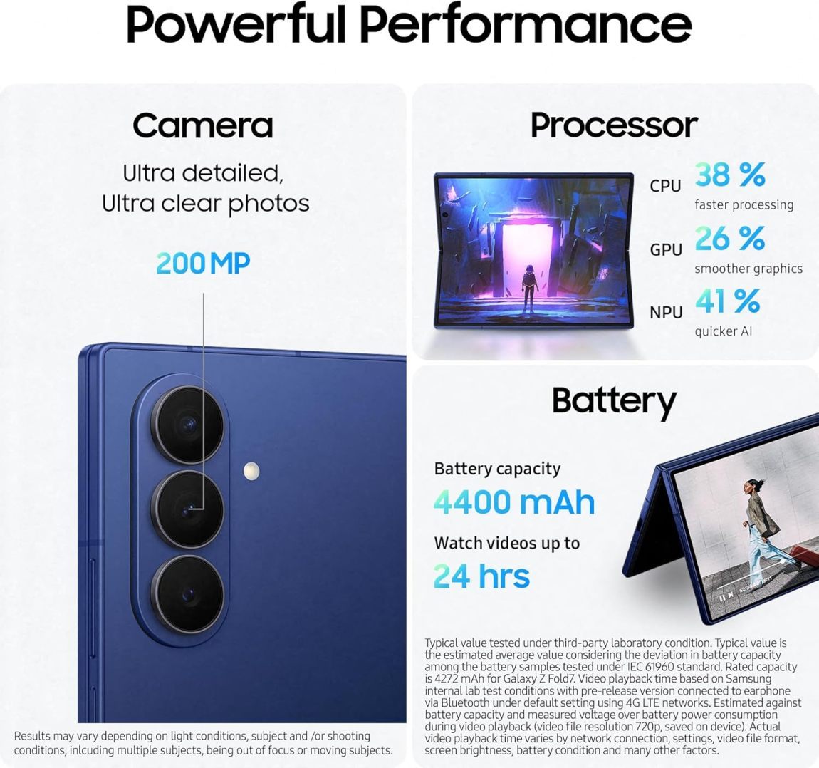 Samsung Galaxy Z Fold7 – Ultra Thin Foldable Phone, 200MP Camera, Large Screen, 12GB RAM, 1TB,4400mAh Battery, Jetblack, 3-Year Samsung Warranty