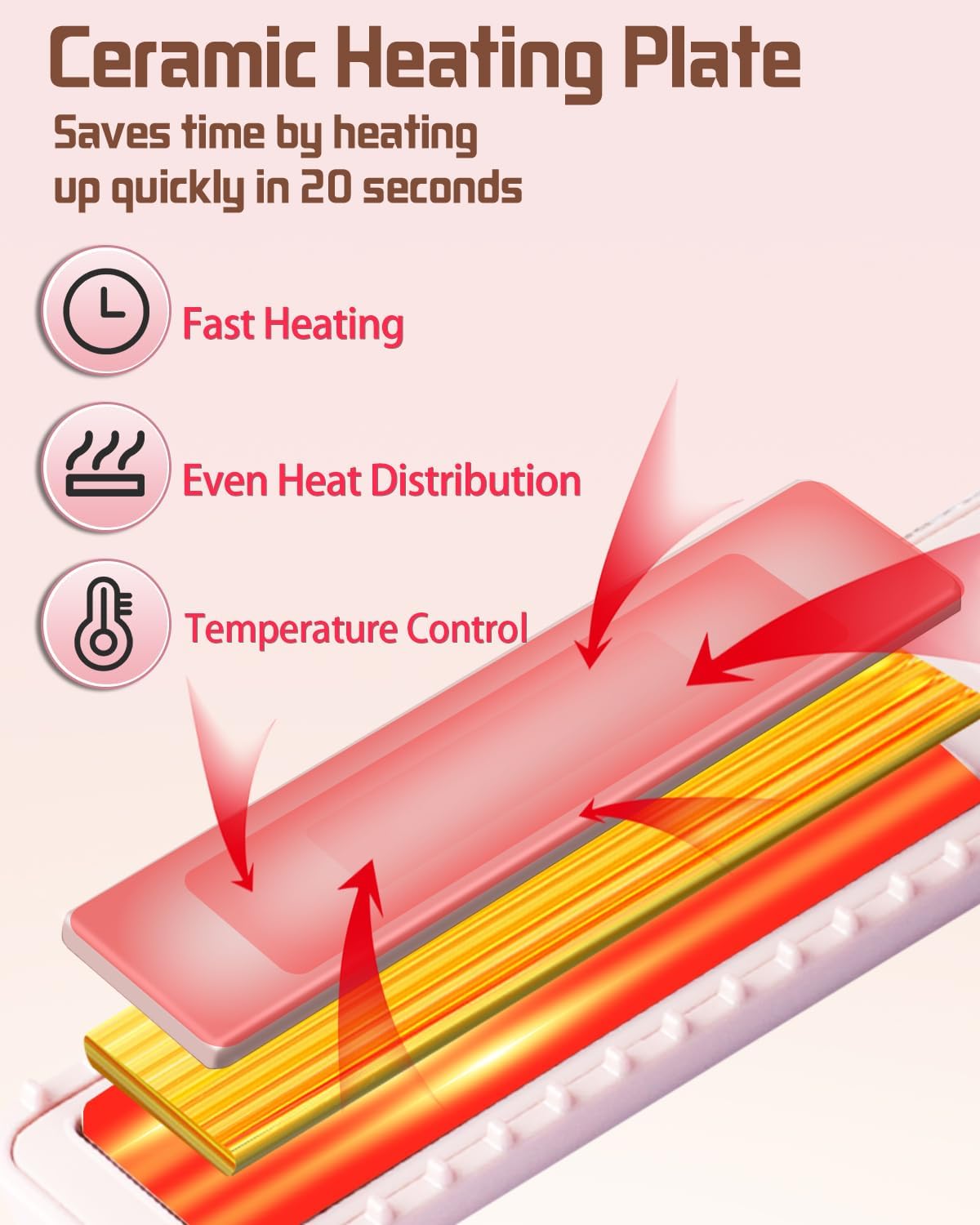 - 【3 Heating Temperatures】The pink hair straightener with diamond has three temperature adjustments, 160°C/180°C/200°C (320°F/356°F/392°F)suitable for ironing, soft, rough, thick, and other hair, not recommended for long hair